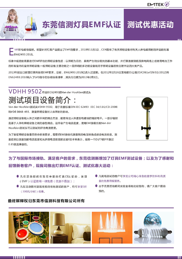 東莞信測(cè)燈具EMF認(rèn)證優(yōu)惠