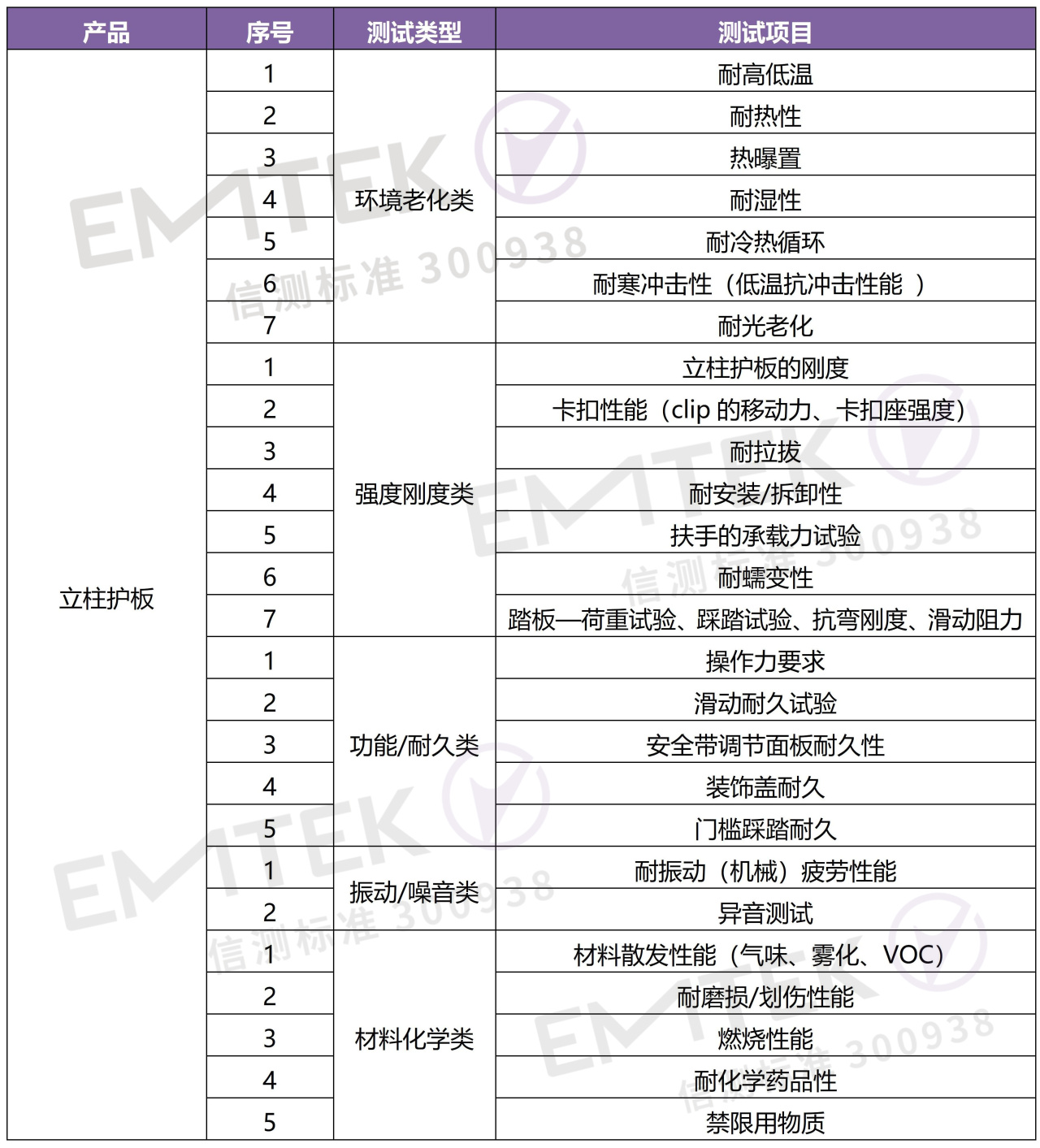 考核產(chǎn)品使用過程中承受的強度和剛性、操作功能特性及耐久、振動試驗等,比如立柱護板的剛度、卡扣性能、安裝/拆卸性能、安全帶調(diào)節(jié)面板操作性能、安全帶調(diào)節(jié)面板耐久性、裝飾蓋耐久、振動耐久、振動噪音等;
