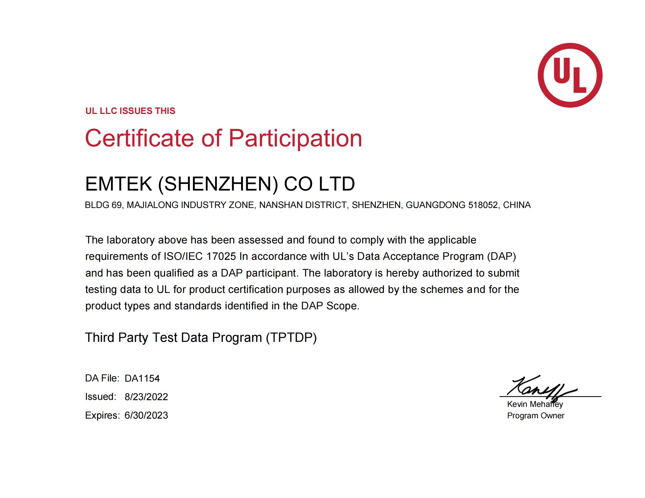 2022年8月末,深圳信測標(biāo)準(zhǔn)技術(shù)服務(wù)股份有限公司順利再獲由IECEE認(rèn)證機(jī)構(gòu)NCB發(fā)出的CBTL&TPTDP資質(zhì)續(xù)期證書。這是繼2011年取得CBTL&TPTDP資質(zhì)后的第11年,信測標(biāo)準(zhǔn)與美國UL長期保持著友好合作,是UL的CBTL實(shí)驗(yàn)室及TPTDP免目擊實(shí)驗(yàn)室。