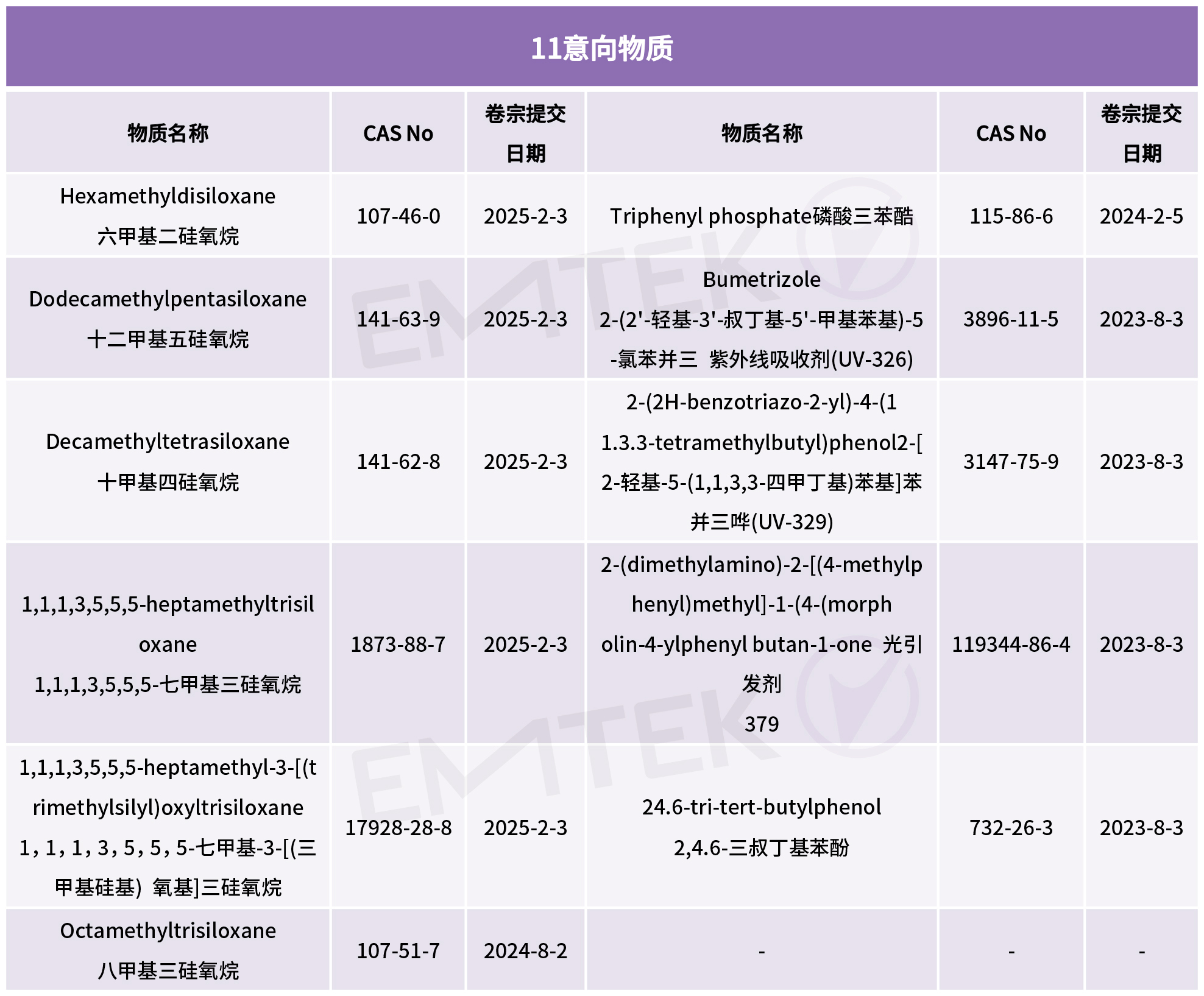 ECHA更新了11項(xiàng)SVHC意向物質(zhì)清單