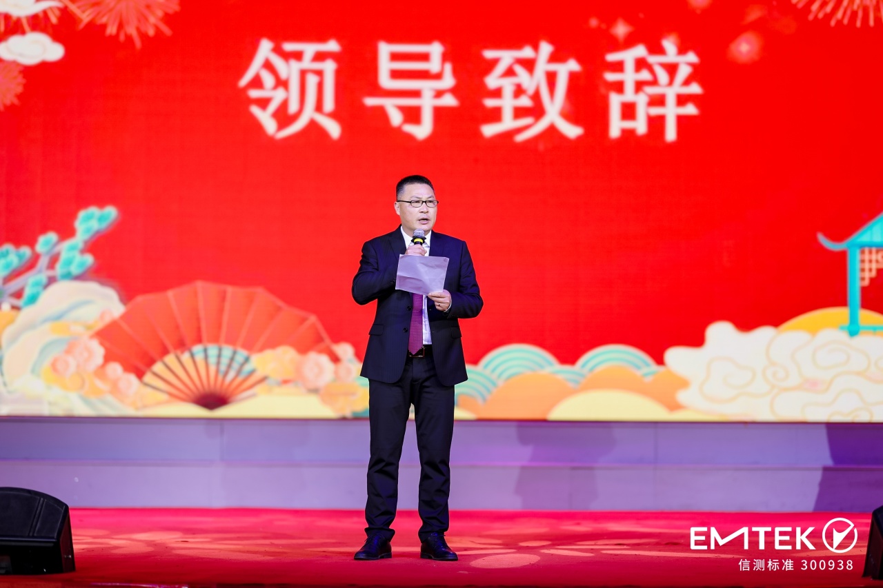 隨后,信測(cè)標(biāo)準(zhǔn)董事長(zhǎng)呂杰中先生上臺(tái)致辭。呂杰中董事長(zhǎng)對(duì)所有員工過(guò)去這一年的辛勤付出與奉獻(xiàn)表示最誠(chéng)摯的感謝。他回顧了過(guò)去一年來(lái)信測(cè)發(fā)展的重要事件及取得的成就并提出了新的一年的發(fā)展目標(biāo)和期望,鼓勵(lì)員工們以公司發(fā)展戰(zhàn)略和經(jīng)營(yíng)目標(biāo)為導(dǎo)向,以戰(zhàn)略的思維、全面的眼光審視市場(chǎng)格局,以務(wù)實(shí)穩(wěn)健的態(tài)度、堅(jiān)定不移的信心開拓進(jìn)取,實(shí)現(xiàn)2024新的破局。