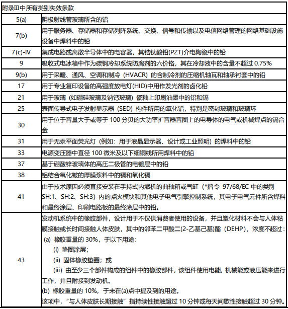 豁免條款是歐盟 RoHS 指令中的重要組成部分?;砻鈼l款分別列于附錄Ⅲ和Ⅳ中,其中附錄Ⅲ是針對(duì)所有電子電氣設(shè)備應(yīng)用的豁免,附錄Ⅳ則是專(zhuān)門(mén)針對(duì)醫(yī)療和監(jiān)控設(shè)備應(yīng)用的豁免。