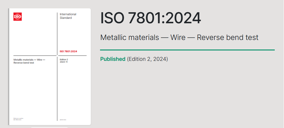 近日,由深圳信測標(biāo)準(zhǔn)技術(shù)服務(wù)股份有限公司牽頭起草的國際標(biāo)準(zhǔn)ISO 7801:2024 Metallic materials — Wire — Reverse bend test 《金屬材料 線材 反復(fù)彎曲試驗(yàn)方法》正式批準(zhǔn)發(fā)布。