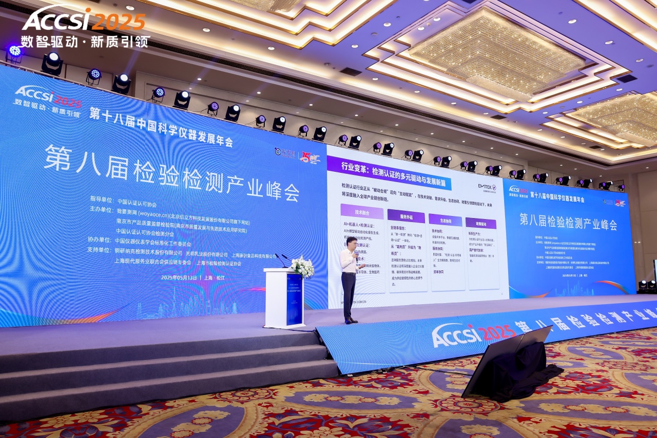 5月13日,以“數(shù)智驅(qū)動,新質(zhì)引領(lǐng)”為主題的第八屆檢驗檢測產(chǎn)業(yè)峰會在上海市成功舉辦。會議有20個精彩主題報告:聚焦數(shù)字化、智能化等前沿發(fā)展趨勢,深度探討在新形勢下,如何憑借創(chuàng)新驅(qū)動,引領(lǐng)檢驗檢測行業(yè)走上高質(zhì)量、高效率的可持續(xù)發(fā)展新征程。信測標準總經(jīng)理袁奇先生受邀出席并就《新興產(chǎn)業(yè)檢測布局與最新技術(shù)創(chuàng)新實踐》為主題做報告演講。