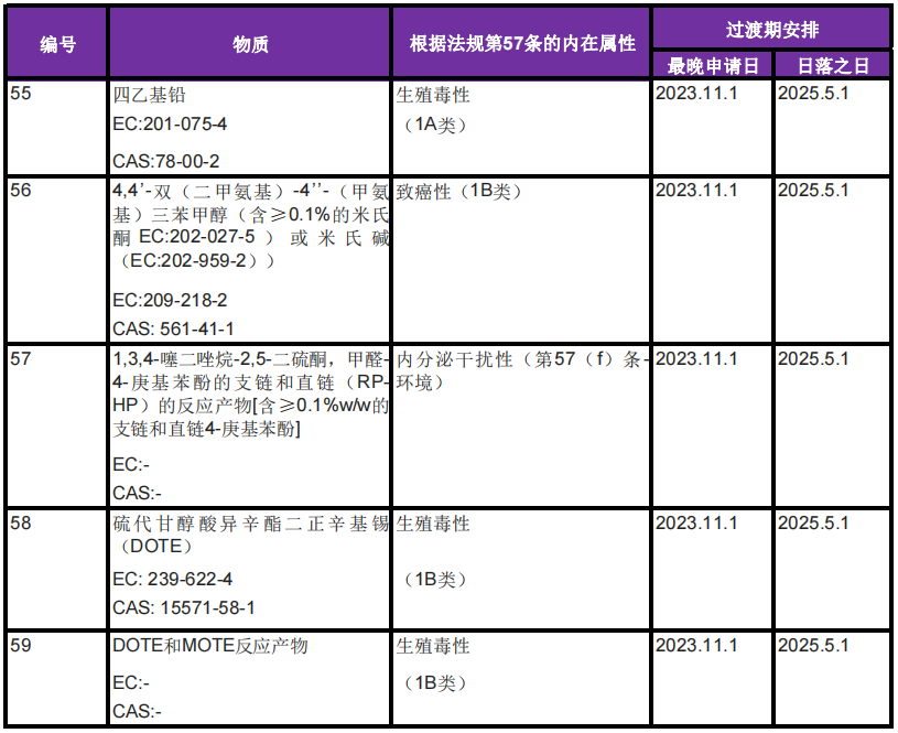 此外,根據(jù)法規(guī)要求,當達到授權物質(zhì)的日期要求時,ECHA需要考慮,這個物質(zhì)是否對人體健康或環(huán)境有不可充分控制的風險,若存在,則ECHA需要準備相應的卷宗來提出對該物質(zhì)的限值,此時,該授權物質(zhì)就有可能成為限值物質(zhì)了。