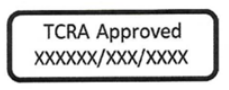 6. 新增TCRA 標(biāo)簽要求,內(nèi)容和樣式如下圖。其中XXXXXX/XXX/XXXX 為證書(shū)編號(hào),標(biāo)簽應(yīng)使用 Arial 字體(字號(hào)最小為5)。允許使用電子標(biāo)簽。