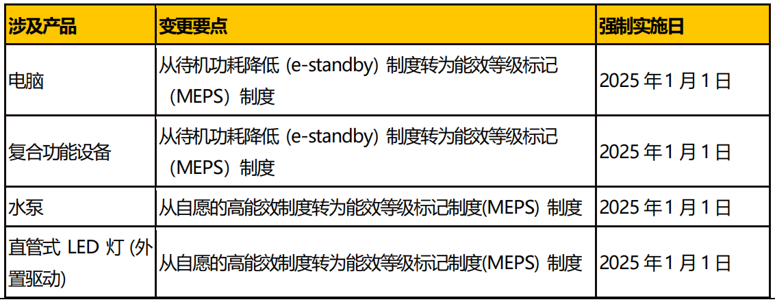 1.《電焊機能源效率標識實施規(guī)則》普通照明用 LED 平板燈能源效率標識實施規(guī)則》《商用電磁灶能源效率標識實施規(guī)則》自 2024 年 6 月 1 日起實施,有效期 5 年。2024 年 6 月 1 日前出廠或進口的產(chǎn)品,可延遲至 2026 年 6 月 1 日按實施規(guī)則加施能效標識。