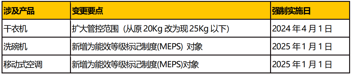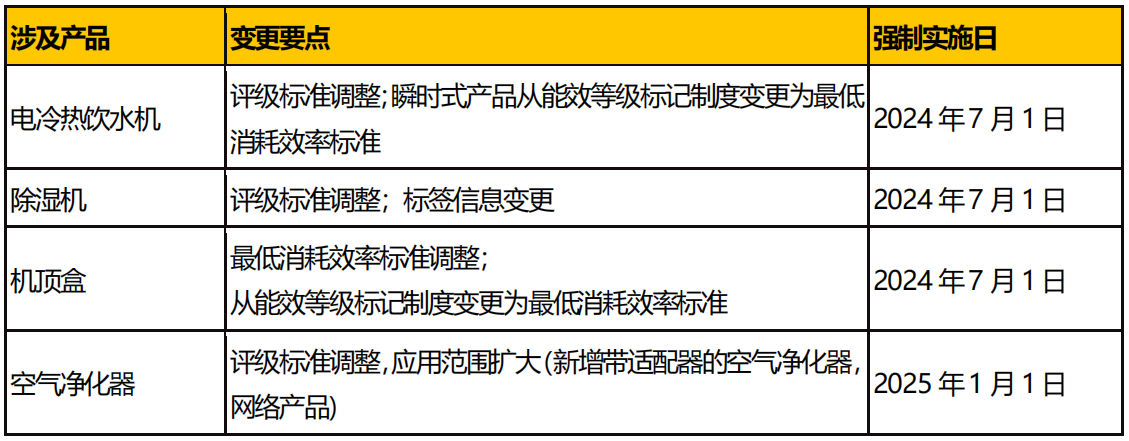 2023 年底,國家發(fā)展改革委、市場監(jiān)管總局組織制修訂了《中華人民共和國實行能源效率標識的產(chǎn)品目錄(第十六批)》及相關(guān)實施規(guī)則,具體如下: