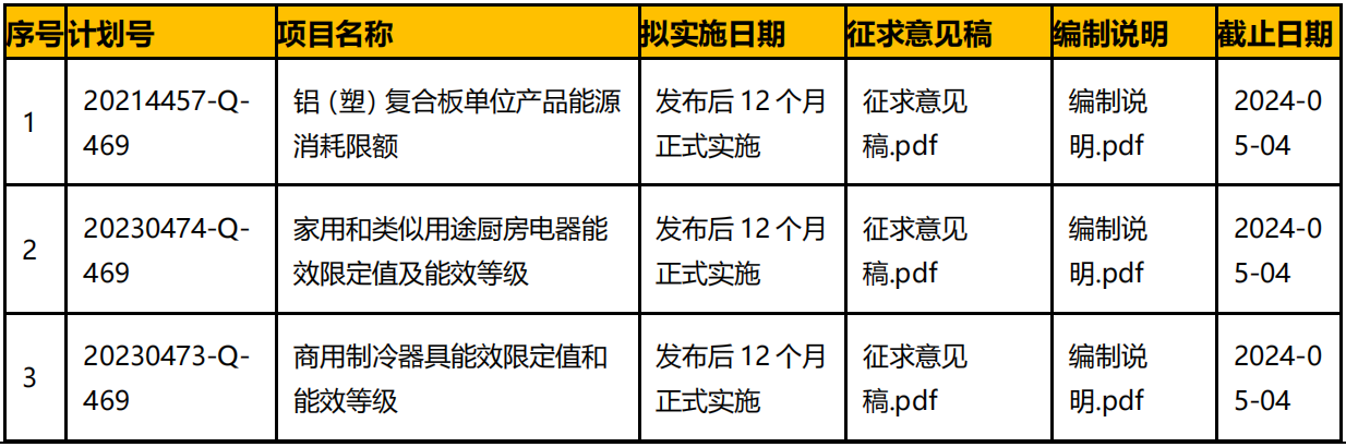 《商用制冷器具能效限定值和能效等級》等 3 項國家標準的征求意見稿,現(xiàn)公開征求意見。請于2024年5月4日前將意見反饋給組織起草部門。