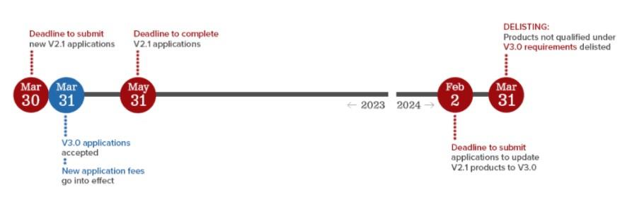針對現(xiàn)有申請,在寬限期內(nèi),申請人可以將CoC 續(xù)展,期限最長為一年。然而,自2024 年 5 月 1 日起,將不再允許更新現(xiàn)有CoC。相反,應(yīng)通過提交平行比較(PBC)申請來更新相關(guān)設(shè)備的現(xiàn)有認證并符合最新的技術(shù)規(guī)范要求。
