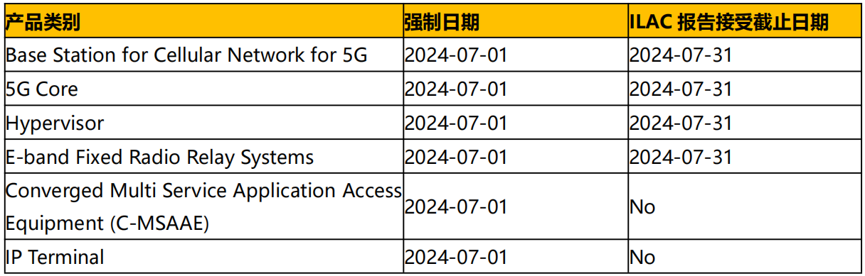 2. 自 2024 年 7 月 1 日起,蜂窩終端設(shè)備(非移動(dòng)電話)必須支持 4G,否則無法申請(qǐng)型式認(rèn)證。