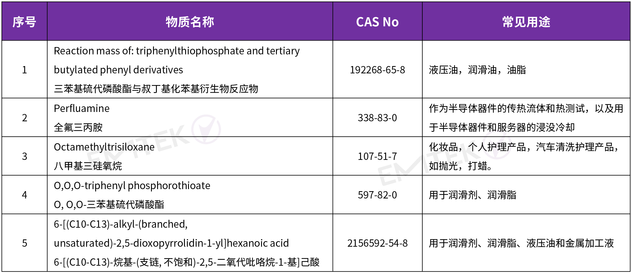 2025年1月21日,歐洲化學(xué)品管理局(ECHA)正式將下面5項(xiàng)物質(zhì)納入SVHC物質(zhì)清單。至此,SVHC物質(zhì)清單由原來的242項(xiàng)增加至247項(xiàng)。