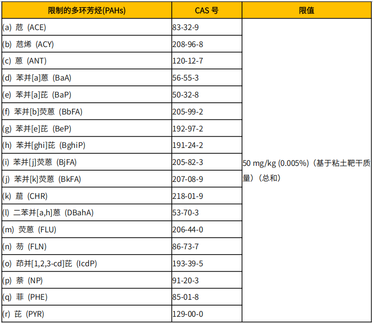 2025年4月2日,歐盟委員會批準(zhǔn)和發(fā)布法規(guī)(EU) 2025/660,在歐盟REACH法規(guī)(EC) No 1907/2006附錄XVII中增加了第50a項(xiàng),限制射擊用粘土靶中的18項(xiàng)多環(huán)芳烴(PAHs)含量。該修訂將于2025年4月22日生效,并將于2026年4月22日執(zhí)行。