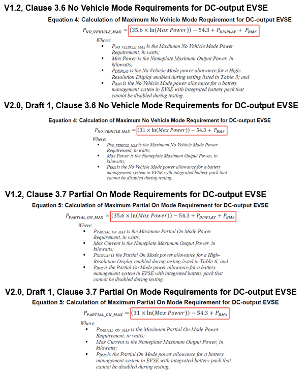 5、修改了DC充電樁在No Vehicle,Partial On模式下功率要求的計(jì)算公式,Max Power自然對數(shù)的倍數(shù)從35.6降為31,并去掉了顯示器的加權(quán)值(PDISPLAY)。