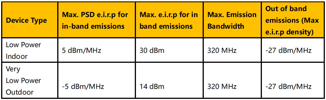 2025年4月29日,布基納法索電子通信和郵政管理局(ARCEP)發(fā)布了第2025-011/ARCEP/CR號(hào)決定,定義了由低功率、短距離設(shè)備組成的站點(diǎn)的類別并規(guī)定了這些站點(diǎn)的使用條件。值得注意的是,ARCEP已批準(zhǔn)將5945-6425 MHz 頻段用于無(wú)線接入系統(tǒng)和無(wú)線局域網(wǎng)(WAS/RLAN)。