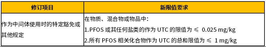 · 為PFOS及其鹽類引入UTC(無意微量污染物)限值,使其與PFOA保持一致;