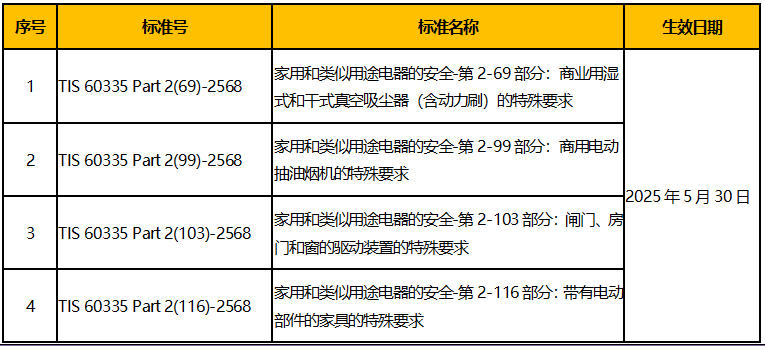 泰國工業(yè)標(biāo)準(zhǔn)協(xié)會(TISI)于2025年2月7日更新TISI標(biāo)準(zhǔn)清單,新增多項自愿性標(biāo)準(zhǔn),見表。