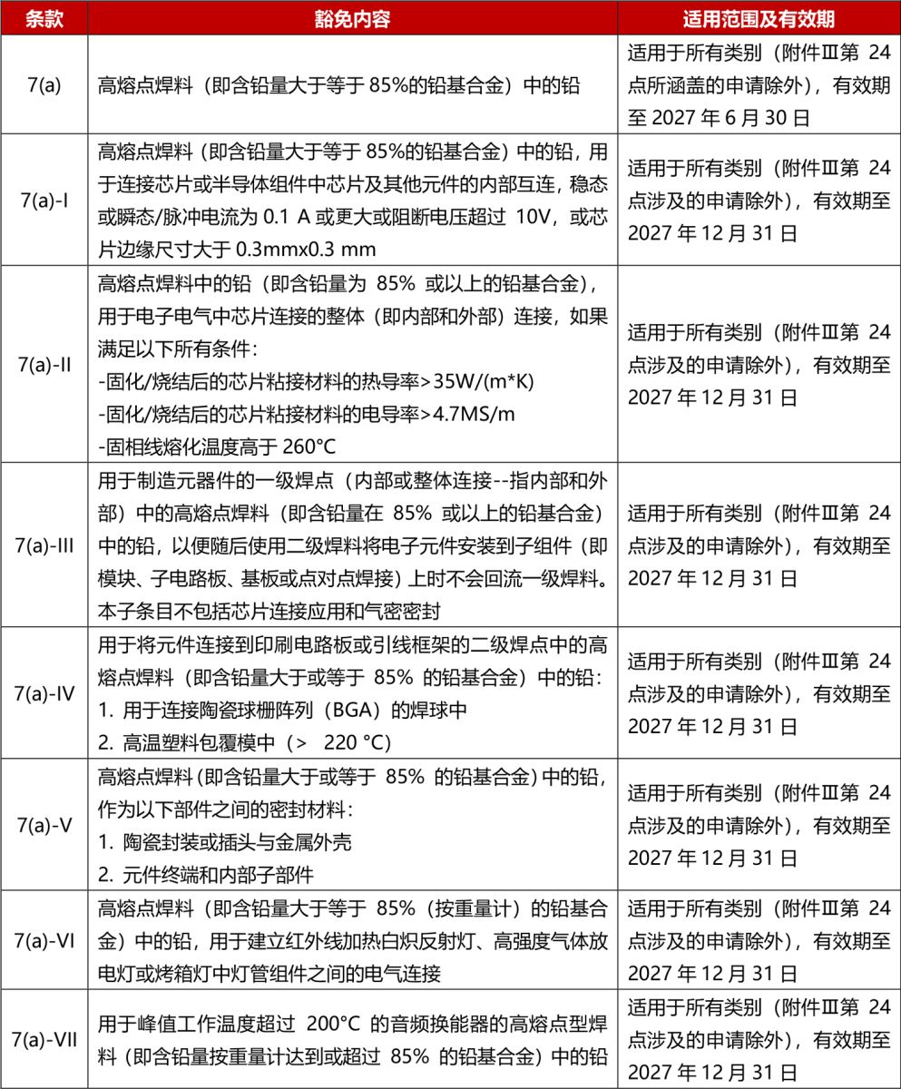 關(guān)于高熔點焊料,RoHS指令附錄III的7(a)豁免條款擬替換為以下內(nèi)容: