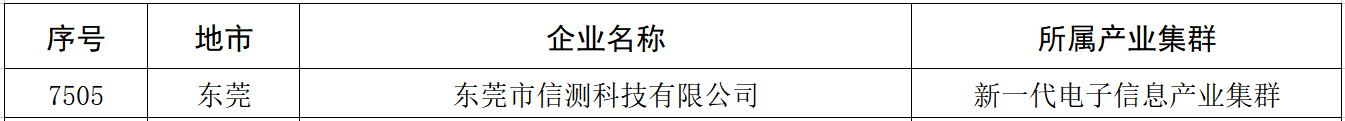 近日,廣東省工業(yè)和信息化廳公布了2022年廣東省“專精特新”中小企業(yè)名單,通過申報和評審,憑借在檢測領(lǐng)域持續(xù)創(chuàng)新和優(yōu)質(zhì)的技術(shù)水平等優(yōu)異表現(xiàn),東莞市信測科技有限公司獲評“廣東省專精特新中小企業(yè)”榮譽(yù)稱號。